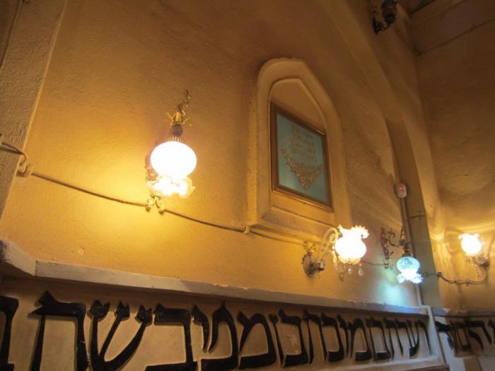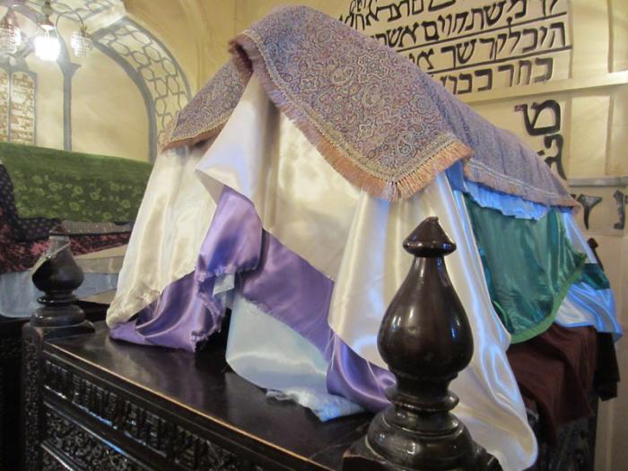 Первое представляет собой молельню, где вдоль стоят семисвечники, расставлены стулья, а в висящем на стене шкафу хранится огромная Тора.