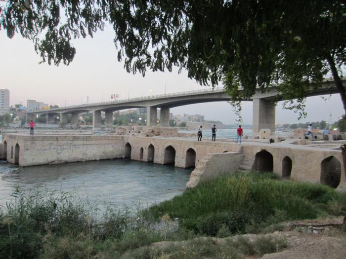 Из-за жары не стали надолго останавливаться в городе (именно в Шуше, в музее, иранец, который держит на территории музея небольшой магазинчик с изделиями ручной работы, сказал нам, что в Иране в этом регионе два месяца в году стоит такая жара. Этот иранец спасал нас в своем магазинчике от жары, а то мне уже даже стало плохо), попытались найти, где покушать, но город был какой-то пустынный, наверное, к вечеру оживает. И мы сели в машину к кондиционеру поближе и поехали дальше. И через пару часов были в городе Дизфуль. Его название в переводе с персидского звучит как «Крепостной мост». Предполагают, что своё наименование город получил по расположению на его территории моста через бурную речку Диз. От прошедших эпох в Дизфуле сохранилось немало исторических сооружений — руины древних крепости, мостов, водяных мельниц, ныне представляющие собой архитектурные памятники.
