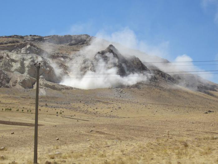 Дорога опять пролегала в горах: горы, жарко, масло выплескивалось из трубки вентилятора картера, тормозные колодки дымились — слишком крутые спуски, немного (правда совсем немного) было грунтовки в Иране. На горной дороге на спуске мне пришлось резко затормозить, так как на дороге валялись камни, а на обочине встречной полосы стояла машина со сломанным колесом, валялся колпак колеса, я-то затормозила, а вот молодой иранец, который и ехал-то вроде не «впритык», затормозил поздновато, въехал нам в задний бампер, помял номер, да бампер немного поцарапал. Так как я не знала, прописана ли какая-нибудь страховка в нашей бумаге на машину (бумага была оформлена на фарси), ущерб минимален, разъехались мило. Вот и всё, Иран, до свидания! Не смотря на те моменты некоторого неудобства, которые возникали в Иране, не смотря на небольшое ДТП в последний день, я хотела бы еще сюда приехать, Павел — тоже.