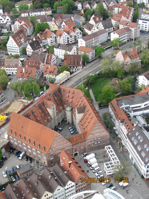 мы отправились в Ульмский собор- это самая высокая в мире христианская постройка сакрального предназначения (высота 161,6 м).( по данным Википедии). Вход на смотровую площадку 4-евро, дети до 7 лет бесплатно. Если кто-то отправится на покорение этого собора, хочу предупредить, что подъем не из легких. Бабушка у нас дошла только до второй смотровой площадки… Но подняться туда стоит… вид с верху непередаваем…