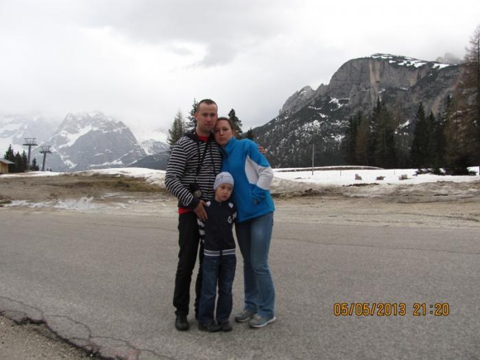 расположенном у входа в зоопарк и отправились дальше в сторону Италии. Огромное впечатление на нас произвели Альпы… Ооочень красиво. Сидя за рулём возникает дилемма – рулить или смотреть на окружающую красоту… В доломитовых Альпах мы хотели заехать в хижину Ауронзо, но заехав на высоту 2100 метров обнаружили сначала один шлагбаум, который мы объехали, но потом возле какого-то кафе второй со знаками – « движение запрещено», в общем дальше решили не ехать. Остановились пофоткались и отправились дальше.