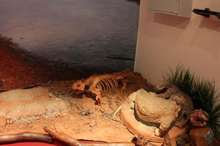 1 зал посвящен динозаврам,2 зал гигантским ящерам Пермского периода, которых находят в в районе города Котельнич.