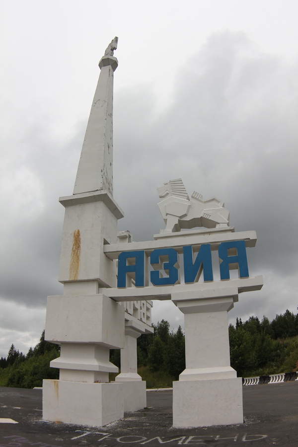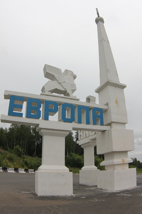В 12:30 мы пересекли границу Европа -Азия (2375 км от СПб и 120 км до НТ)Есть несколько знаков на границе двух частей света, но это самый впечатляющий, что я видел: