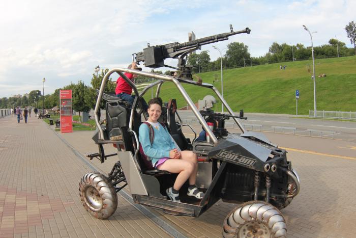 После зоопарка мы немного перекусили и поехали гулять на набережную Ижевского пруда. Похоже во многих городах именно набережная считается хорошим местом для прогулок и поэтому там обычно чисто и красиво. Недавно в Ижевске проходил конкурс скульптур из металлолома, и они выставлены на набережной.