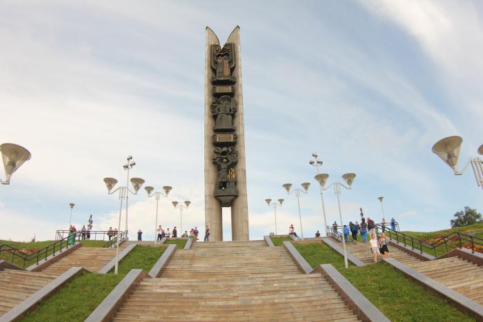 еще выше к символу Ижевска-пареньку Ижику, выплавленному из металлолома, собранного силами жителей города.
