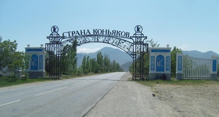 При въезд в город нас встречает арка через всю дорогу с надписью «Страна Коктебель». И сразу сбоку от дороги стоит знаменитый Завод марочных вин и коньяков «Коктебель», продукция которого пользуется большим спросом не только в Крыму, но и во многих странах за рубежом. Туда заехали и мы, чтобы купить «подарки» нашим друзьям. Одним из лучших крымских вин считается «Мадера Коктебель». Тут выяснилось, что до недавно времени арку, которую мы проехали, украшала другая надпись — «Страна Коньяков».