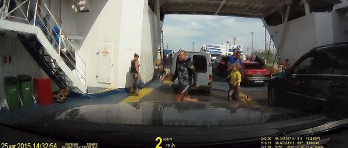 По прибытию в порт мы так же гуськом съехали с палубы. Тут надо быть предельно внимательным, так как машины и люди попадают на берег через одни «ворота». Большинство «безлошадных» пассажиров аккуратные и идут с краю, но некоторые бегают перед машинами. Будьте бдительны, кто-то может оказаться на пути следования Вашего автомобиля!