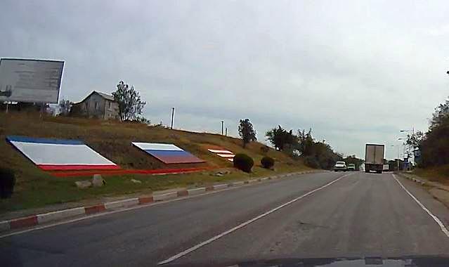 И в половине одиннадцатого мы были в Керчи. Очереди на паром, которая начиналась перед городом и которой нас пугали, не было. Город был украшен флагами, которые с ходу мы не смогли идентифицировать.