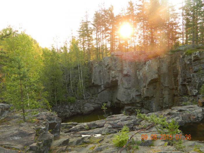 У водопада располагаются Музей природы и дендрарий. Был уже вечер, поэтому народу было не много. Водопад очень красивый, мощный. Потрясающая природа. Полюбовавшись водопадом, мы направились в Музей. Очень интересные экспозиции, рассказывающие о фауне и флоре Карелии. На часах было уже около 21 часа, а мы еще не нашли место для ночлега. Хотя темнело очень поздно, но мы уже устали от впечатлений и хотели кушать. Так как следующей точкой нашего путешествия был застывший вулкан Гирвас, мы двинулись в его сторону.