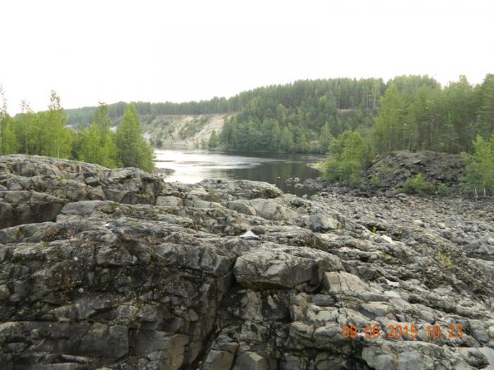 Следующей точкой нашего путешествия стал затухший вулкан – Гирвас. Данный объект располагается в южной части посёлка Гирвас. Это уникальный геологический объект — самый древний (около 2 млрд. лет) кратер вулкана в Карелии. Найти его можно самостоятельно или спросив у местных жителей, как проехать на ГЭС. Приехав на место и заплатив по 80 рублей с человека, мы пошли осматривать окрестности.