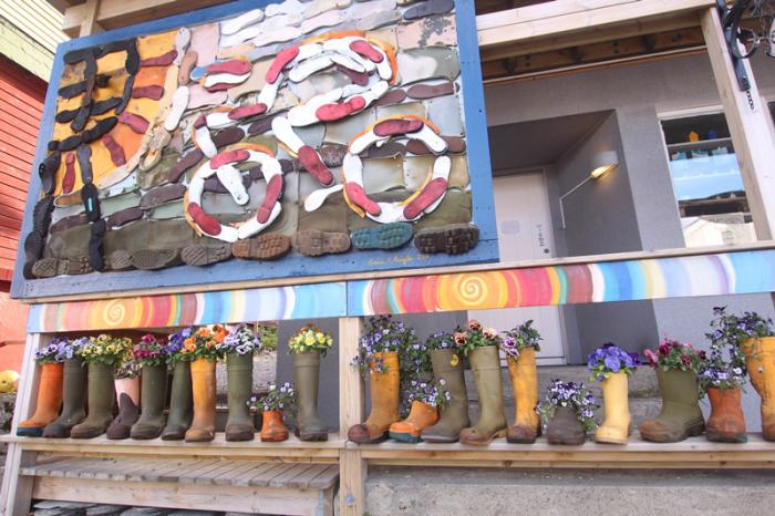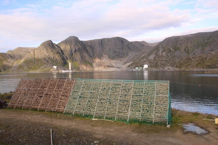 Очень приятный оказался городок, с удовольствием прошлись по улочкам, народу очень мало. Путешествуя в этом году, мы много раз видели сооружения, которые в Норвегии используют для вяления трески, в Хоннингсвоге же впервые рассмотрели. Найти их в городе оказалось не трудно, по очень сильному запаху рыбы.