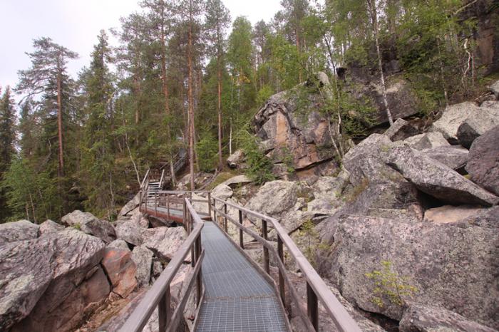 Проехав 80 км от Рованиеми, мы попадаем в зону отдыха Ауттинкенгяс. Природный пейзаж тут очень красивый. Вокруг водопада для туристов проложена тропа, пройдя по которой можно попасть к подвесному мосту, смотровой башне. Налюбовавшись древним девственным лесом, мы возвращаемся в столицу Лапландии.