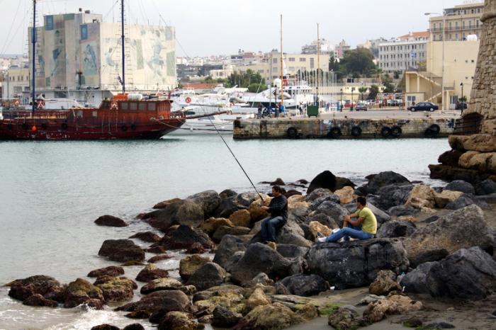 Порт Ираклиона выходит на старую часть города небольшой гаванью, охраняемой крепостью венецианских времен. В гавани огромное количество небольших катеров, яхт. Обнаружили отдельный причал с паркометрами, как на автомобильной стоянке, удивительное зрелище.