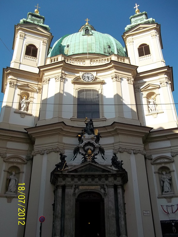 Спрятанная в одной из улочек, которые отходят от широкой и центральной Грабен, церковь святого Петра считается одной из древнейших в Вене. Пара наклонных башен по бокам от купола и яркий изумрудный цвет самого купола придают храму необычный вид.