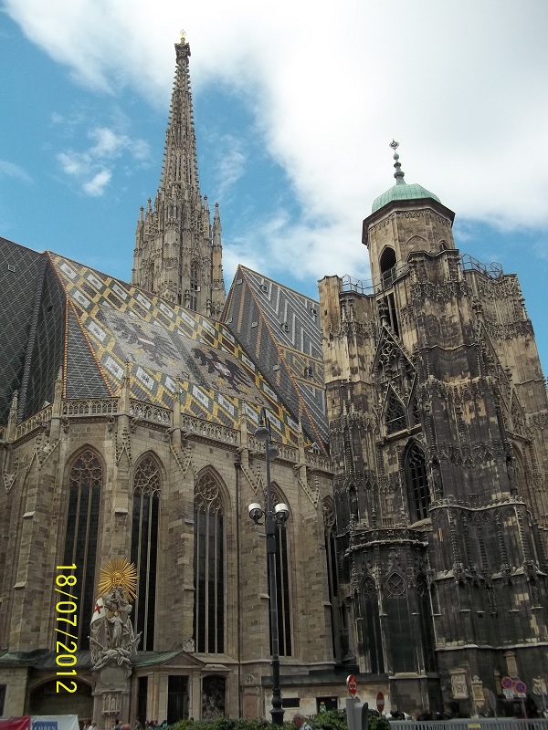 Надо сказать, что Вена произвела на нас самое сильное впечатление – это был на наш взгляд, как мы решили по окончанию путешествия, самый величественный и парадный город из всех увиденных. Каждому городу я дала эпитет – Вена заслужила звание «блистательная». Путешествие мы начали с Штефанплац с лицезрения знаменитой «колючки» — собора святого Штефана. И, если, как написано в маршруте, Вена в средние века соперничала с Прагой, то, на мой взгляд, Собор святого Штефана превзошел по красоте Собор святого Вита. Но это мнение субъективное, к тому же дилетанта. Величие собора просто потрясает, мы ходили вокруг и сделали бесчисленное количество фотографий.
