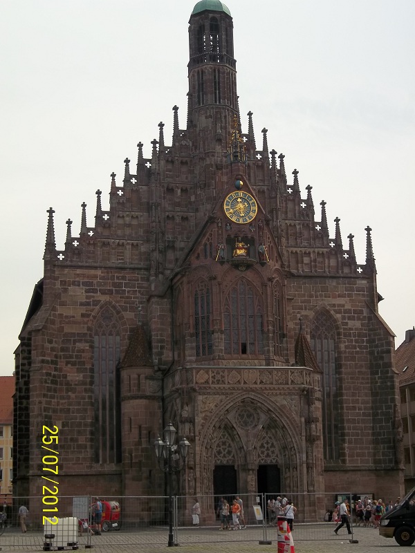 Утром поехали осматривать достопримечательности Нюрнберга. Машину оставили на крытом паркинге рядом с Hauptmarkt, где находится известная достопримечательность города и один из его символов – церковь Фраункирхе.