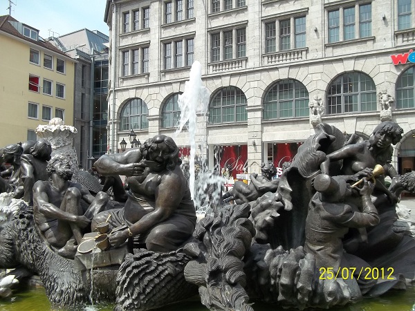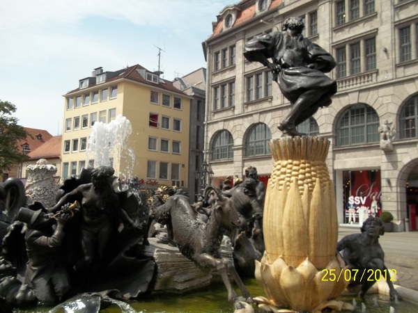 В Нюрнберге интересные фонтаны – самый известный из них, пожалуй, фонтан Супружеская карусель на Площади Людвигсплатц, исполненный по мотивам поэмы Ганса Сакса «Горько-сладкая супружеская жизнь». Фрагменты фонтана изображают различные периоды семейной жизни. Но заканчивается все не очень.