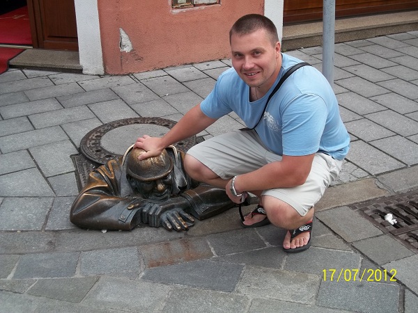 В интернете вычитала, что одно из самых увлекательных занятий гостей Братиславы — поиск самых забавных его жителей, бронзовых фигур. Мы тоже повстречали их.