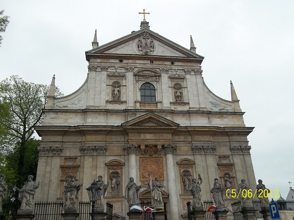 Перед Сукенницами находится памятник Адаму Мицкевичу, монумент, с которым связано много традиций и интересных историй. А с другой стороны площади возвышается башня ратуши, первое упоминание о которой относится к XIV веку. В летний период на башню можно подняться, чтобы полюбоваться панорамным видом города. В мае вход был закрыт, так что в этот раз мы с удовольствием поднялись наверх. Кстати, семейный билет (на троих) стоил 15 злотых. Главной достопримечательностью улицы Гродская является костел Св.Петра и Павла, первый в Польше костел в стиле барокко.