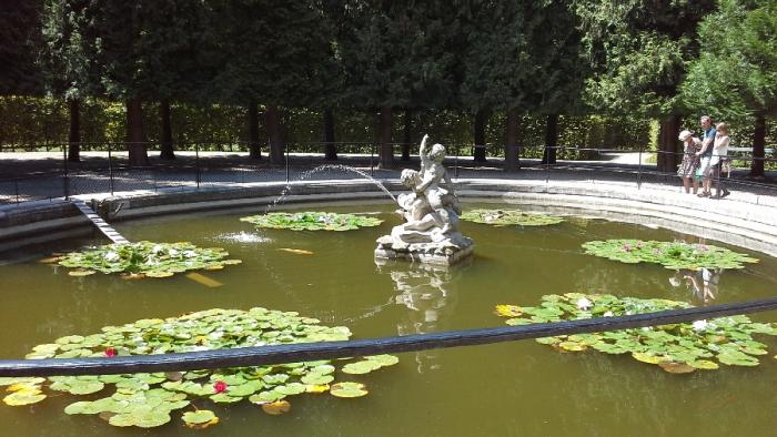 Перед входом во дворец, большая площадь с красивым фонтаном ангелов.