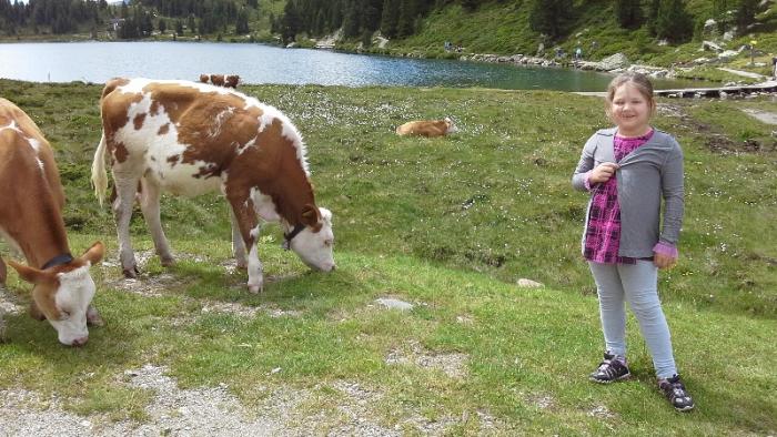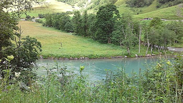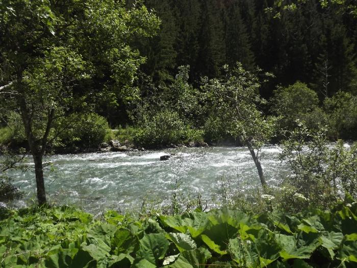 Дальше наш путь лежит вниз к городку Хайлигенблют-южные ворота Глоссглокнера.Дорога все время идет вниз, проезжаем многочисленные альпийские луга с пасущимися коровками, роскошные альпийские домики.В городе Лиенц заезжаем в универсам Билла и прикупаем продуктов для пикника. Пикник решили устроить на пути к перевалу Сталле. Наконец находим место на берегу реки: оборудованное как раз для таких путешественников как мы.