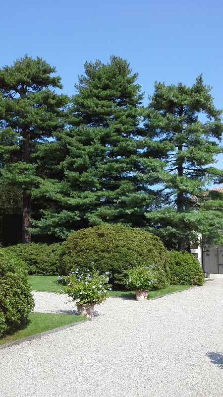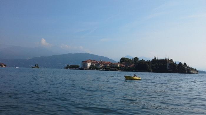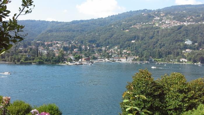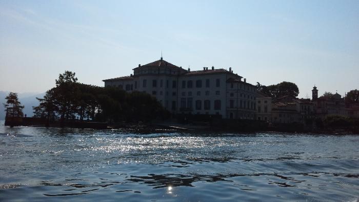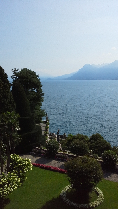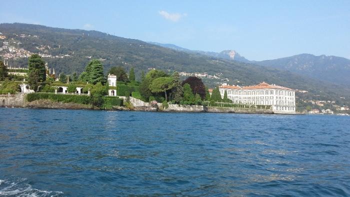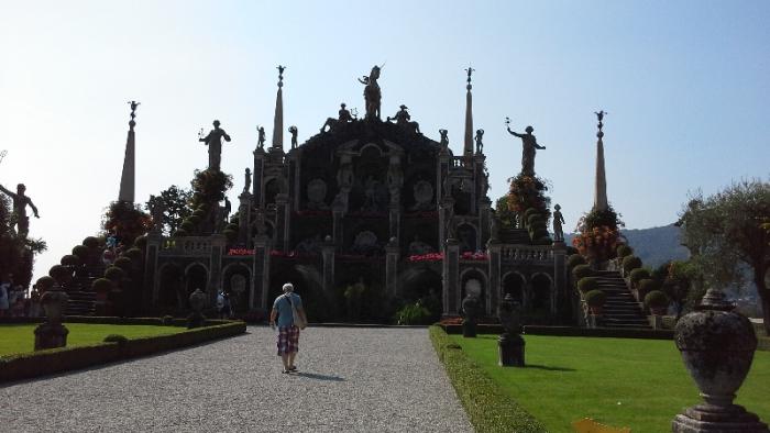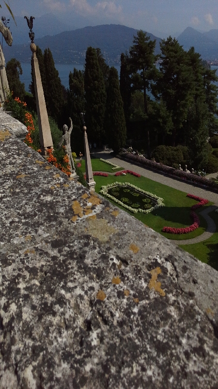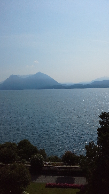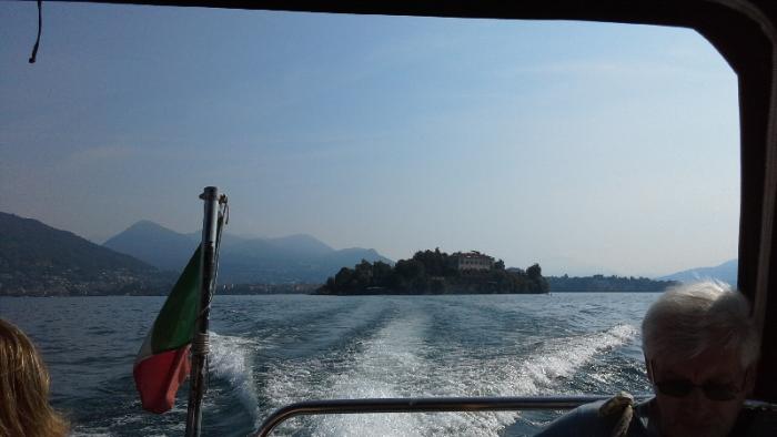 После завтрака договорился в отеле, что машина постоит на стоянке до полудня.В первоначальных планах был подъем на фуникулере на гору Моттароне(1491 м) с которой открываются бесподобные панорамы на озеро и острова, но ввиду того, что вчера уже поднимались на более крутые вершины, решили не откладывать и плыть на Бoрромейские острова. Вернее на один-самый известный и самый красивый-Isola Bella.На пристани, которая находится в пяти минутах ходьбы от отеля сели на кораблик, заплатив за проезд в оба конца 15 евро.Судно как раз курсировала между всеми 3 мя островами, поэтому удалось подплыть и увидеть каждый из них. Борромейские острова получили свое название от своих владельцев ветви Борромео.Семья происходит из Тосканы.семейство уже тогда, в ХV веке владело банковской сетью.В 1501 г оно приобрело и острова Белла и Мадре.Семья Борромео дала Италии семь кардиналов, самым известным из них является Карло Борромео, признанный святым, архиепископ Миланский, видный деятель Контрреформации. После своей смерти он завещал все свое состояние бедным и вскорости был канонизирован.В городе Арона есть памятник высотой 35 м, отлитый из меди, водружен на гранитном пьедестале.Внутри изваяние совершенно пустое: по крутой лестнице можно подняться на самый верх статуи и с высоты полюбоваться панорамой гор и озера.Сначала наш кораблик огибает остров Белла и у нас есть возможность полюбоваться им со стороны озера