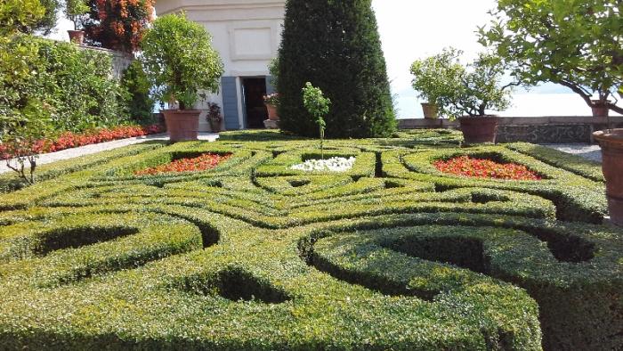 Лабиринты самшита с яркими цветущими клумбами поражают своей безупречностью