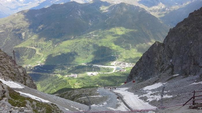 откуда открывались великолепные виды на перевал Tonale внизу, окрестные вершины и перевал Passo Gavia впереди крошечные домики сердца этой местности курортного городка Понте ди Леньо, который мы вскорости проехали.