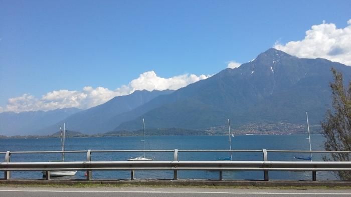 Наконец мы покидаем Passo del Tonale, спускаемся вниз к Понте де Леньо. Через некоторое время нас ждет перевал Априка. Этот перевал я уже проезжал в первое свое автопутешествие, но тогда после него мы повернули в сторону Тирано и через Швейцарию проехали в Ливиньо с дальнейшим проездом через Passo dello Stelvio. На этот раз мы повернули налево и поехали по долине к озеру Комо. Проезжали долину, которая называется Valtellina.Тут небольшое отступление. Не секрет что в Италии после 14-00 поесть практически невозможно Все кафе, рестораны, бары, траттории закрыты.подъехали мы к пиццерии около 14-00 и все закрывается она на обед.Оставался только Макдональдс, хотя быть в Италии и питаться там из Макдональдса-это кощунство, но ничего не поделаешь пришлось останавливаться, ребенок уже не мог без еды, весь мозг вынесла.Поели, поехали дальше, и вот перед нами озеро Комо. Озеро находится во впадине между известняковыми холмами, к северу от Милана и тянется аж до самого подножия Альп.Альпы служат неким заслоном от северных ветров поэтому зимой здесь не холодно да и летом комфортно и не жарко, что привлекает многочисленных туристов.Вокруг озера расположены различные отели и кемпинги, а также многочисленные виллы и частные дома с причудливыми садами с экзотическими растениями.Это самое глубокое и третье по величине после озера Гарда и Маджоре озеро в Италии