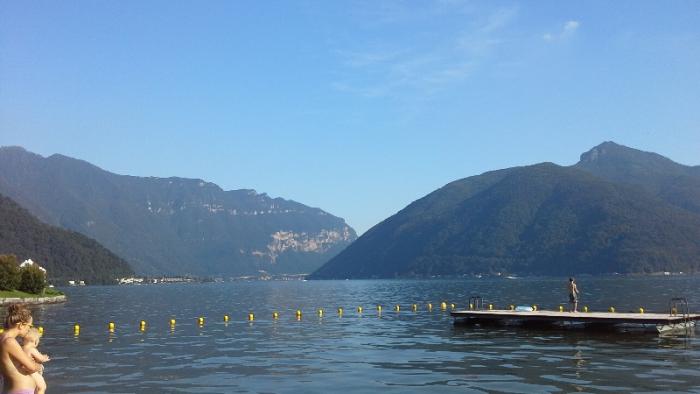 Катя раскапризничалась, купаться хотела, но в озере показалось как то грязновато, мусор плавал.пластиковые бутылки, может поэтому и не купались, не буду плохо говорить о швейцарских зонах отдыха но факт налицо.А что касается бассейна, то это Швейцария и бесплатно тут по сути дела нет ничего. Даже местные предпочитают развлекаться ездить в соседнюю Италию там подешевле.Ну а мы погуляв немного около озера, еще и увидели вход в парк: у входа стояли столы, дежурили полицейские, сидели контролеры, похоже это была платная зона вот там и пляж скорее всего другой.чистый, но это не для нас.Уезжали мы из Мелиде разочарованные, выехали на автомагистраль и решили в Лугано не возвращаться: франков у нас нет со стоянками проблема, а тут еще навигатор повел по автомагистрали.В Швейцарии для проезда по платным трассам нужна виньетка, а нам то на 3 часа зачем ее брать, пришлось свернуть снова в город, проехать по нему, вроде все на итальянском: надписи, магазины, витрины… Ан нет не Италия, да и деньги другие. А еще заметил, что здесь цена на дизель дороже по сравнению с бензином обыкновенным 95 числа где-то в среднем на 5-10 евроцентов, но зато по сравнению с Италией бензин стоит дешевле причем порядка 30 евроцентов.Похоже что в приграничных территориях так и осуществляется курсирование автомобилей из одну страну в другую для того, чтобы сэкономить. особенно если заливаешь полный бак. Но это мое наблюдение, а как оно на самом деле остается догадываться, но то что итальянцы могут так делать уверен, а вот сытым и богатым швейцарцам использующим автомобили с дизельным топливом большого смысла так делать нет. Проехали Локарно и перед нами открылось озеро Маджоре -Lago Maggiore-второе по величине (216 кв.км) озеро в Италии.Благодаря Альпам, закрывающим озеро от северных ветров, здесь круглый год сохраняется мягкий и ровный климат.Благодаря этому климату оно прославилось по всему миру.Здесь свободно растут представители средниземноморской флоры(оливы, кедры, цитрусовые)а в роскошных парках-экзотические растения.