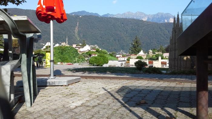 Перед въездом в Мелиде попали в затор перед перекрестком впоследствии для нас как и петляние по улицам Лугано для нас оказал роковым.Поставив машину на стоянку(автомат евро не принимал пришлось заплатить с помощью банковской карты 2 франка)мы подошли к кассам и там нас ждал большой облом: парк и кассы работают до 18-00. Как раз и было около 6 часов вечера.А тут я сам виноват ведь на туристических сайтах указано время работы парка, но не обратил тогда особого внимания потому как планировал подъехать около 16 часов, но незапланированный заранее подъем на фуникулере на Tonale и сложный подъезд по пути к парку привели к таким печальным последствиям.Все очень расстроились, особенно Катя так как ехать утомительно да и жарко было в тот день (Даже вечером в Тичино термометр показывал плюс 30 градусов), а тут была возможность и по парку погулять на аттракционах покататься и посмотреть наконец саму Швейцарию довольно интересную, красивую, но немного от нас далекую вследствие своей дороговизны страну. Но ничего не поделаешь пришлось из за забора посмотреть на некоторые объекты парка, А Света даже немного поснимала. Это конечно издевательство, но выкладываю снимки