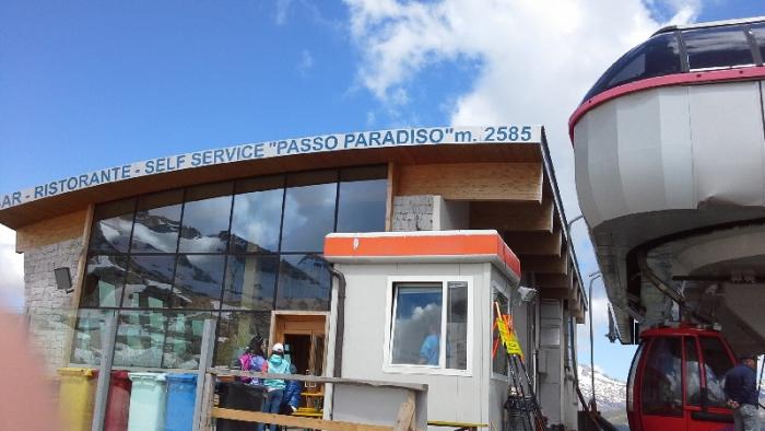 Здесь проходили серьезные бои между австрийскими и итальянскими войсками, а так как все это проходило Зимой и высоких горах, то и войну здесь называют Guerra bianco-белая война. На перевале работают различные канатные дороги, которые поднимают туристов и горнолыжников вверх.Хотя мы не планировали подняться на фуникулере, но увидев, что все работает, решили оставить машину на площадке перед кассами фуникулера и подняться на высоту 2,5 км над уровнем моря.Но для этого сперва надо было потеплее одеться, что мы и сделали, там высоко в горах уже не плюс 18 как на перевале.Отдали 31 евро за билет туда и обратно.