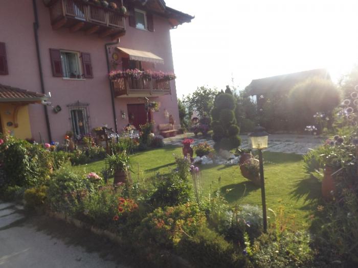Ну и Катя конечно же не упустила возможность сфотографироваться с яблоней. Яблони здесь низкие, но самих яблок на них много. вообще регион Тренто как раз и выделяется тем, что что помимо виноградников, здесь очень много яблоневых садов, климат как раз подходящий и высота над уровнем моря тоже. Когда едешь по этим краям, а я был уже в предыдущей своей поездке по Италии на машине как раз недалеко от этих мест.то по дороге тут и там видны указатели Strada di Mela -яблочная дорога, В Италии в аграрных местностях как раз принято на дороге ставить такие указатели, с тем чтобы проезжающие по этим дорогам видели, что производятся в этих краях, чем богаты эти местности. Несколько слов о самом отеле. Когда планировал поездку, отметил, что рейтинг по отзывам у него очень высокий. Про комфортабельные апартаменты писал уже выше, но хочется отметить и гостеприимство хозяев, их умение сделать так, чтобы сюда снова хотелось возвращаться. Это и вкусные завтраки со своим яблочными пирогами аж 3 видов, натуральным яблочным соком, это и возможность взять бесплатно напрокат велосипед, чтобы поездить по окрестностям. Жаль приехали накануне поздно и не смогли воспользоваться этой услугой. Эта резиденция-бывший фамильный особняк, в котором апартаменты используются для туристов, и скорее всего используется в качестве дома для агротуризма-популярного направления в Европе и в частности в Италии, при котором работа на сельскохозяйственных угодьях сочетается с отдыхом и туризмом.С подобным в местечке Salobbi как раз в 30 км от Флавона, я уже встречался и был поражен как гостеприимством хозяев так и самим домом для агротуризма. А это сам отель, в котором мы провели ночь и вкусно позавтракали .