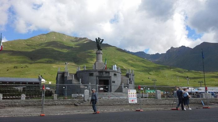 И вот наконец сам перевал Passo del Tonale.Его высота 1884 м над уровнем моря. .На перевале множество отелей, ресторанов, лыжные школы, здесь же находится мемориал памяти падших в Первой мировой войне.