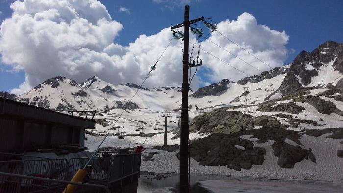 Это ледник Презена.Презена не только является знаменитым местом зимнего отдыха, но и входит в число тех немногих ледников, где можно заняться летними лыжами. Дальше наверх мы подниматься не стали, это требует дополнительную оплату и вверх прежде всего лыжников поднимает бугельная кресельная дорога до непосредственно Cima Presena высотой 3069 метров. Ну а мы пофотографировались <img src=«avtoturistu.ru/uploads/images/4/1/a/4/7350/9d90c933c8.jpg»