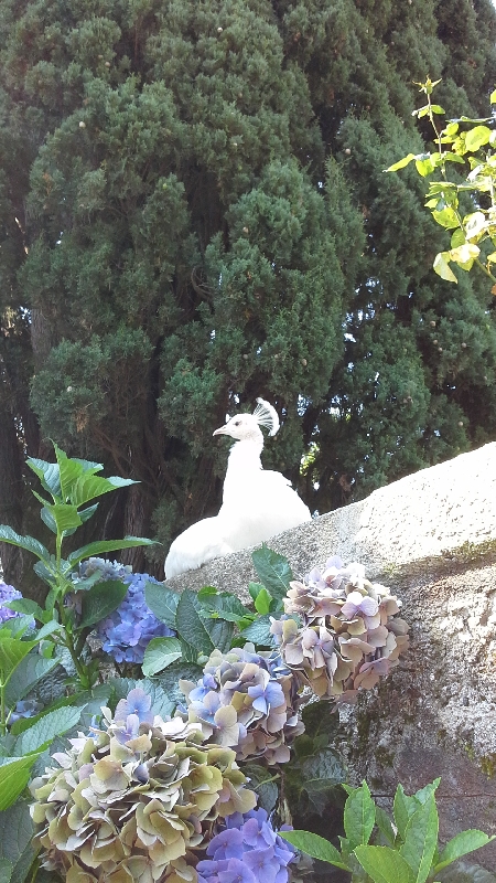 Ну и конечно повсюду гуляют белоснежные павлины.Они вышагивают своей царственной походкой словно намекая посетителям: кто в саду является хозяином