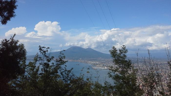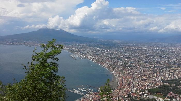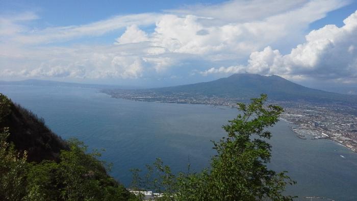 Если посмотреть на фотографию.то перед нами Везувий и Неаполитанский залив, чуть левее город с миллионным населением Неаполь, правее пригороды Неаполя: городки Portici,Torre del Greco,Torre Annunziata, Легедарные Помпеи еще левее и скрыты за горой.