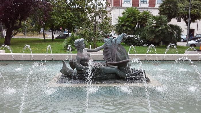 Здесь же симпатичный фонтан и памятник уроженцу Пескары поэту Габриэле д`Анунцио