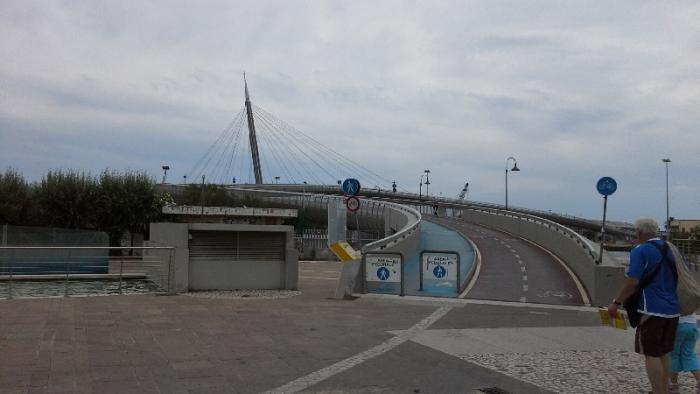 Это один из главных городских памятников. Он был изготовлен скульптором-конструктивистом Пьетро Кашеллой из каррарского мрамора и открыт в 1987 году. Скульптура весьма схематично, но монументально изображает большую вёсельную лодку, символизирует богатые рыболовные традиции города и напоминает о судьбе заключённых, которые использовались на кораблях как бесплатная гребная сила до 1859 года.В Пескаре тоже никто не купается, погода пасмурноватая.Идем по набережной, конечно же не удержались купить знаменитое итальянское мороженое, о котором уже столько сказано.Наконец подходим к еще одной достопримечательности города -465-метровый мост Понте дель Маре – он перекинут через реку Пескара.