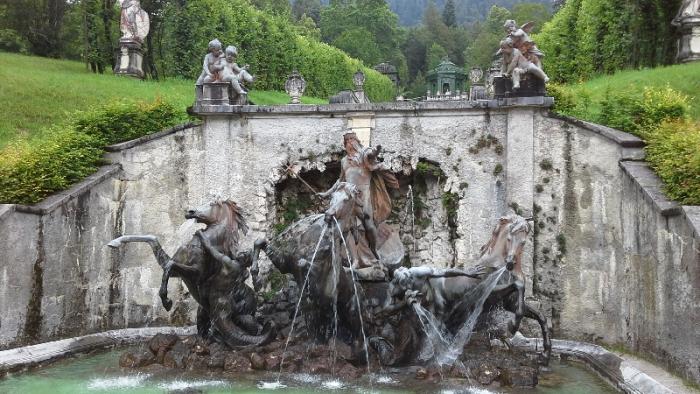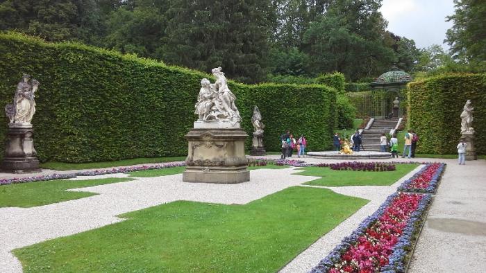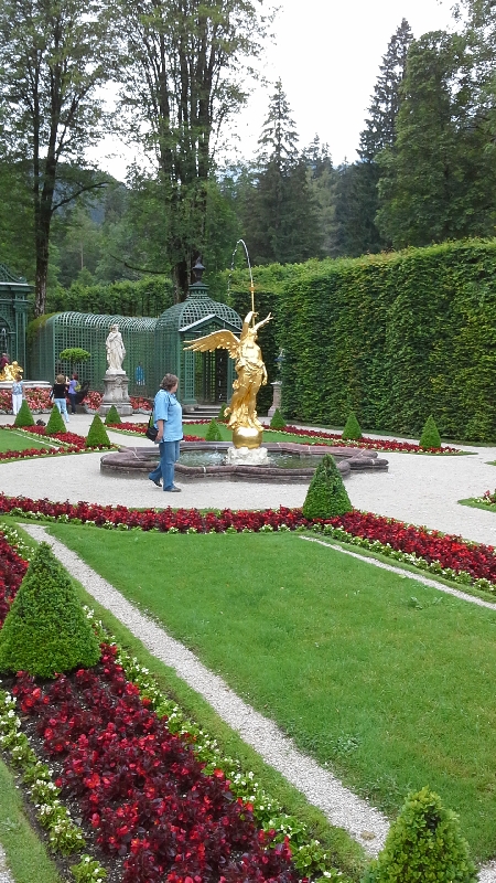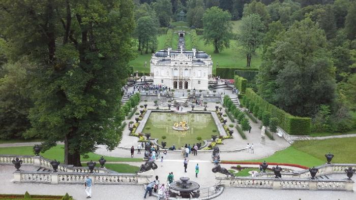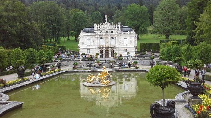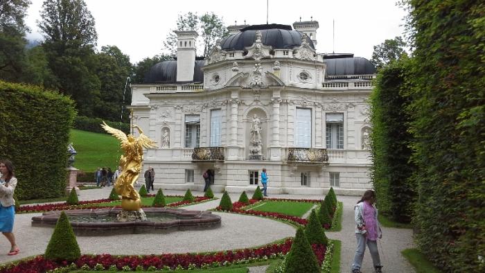 И вот наконец перед нами сам замок Линдерхоф. Первоначальные замыслы родились у короля после посещения Версаля в 1867г. Уже в 1869 году он приобрел владения вокруг Линдерхофа, где его отец, МаксимилианII, владел охотничьим домиком, прозванным«королевским домиком».