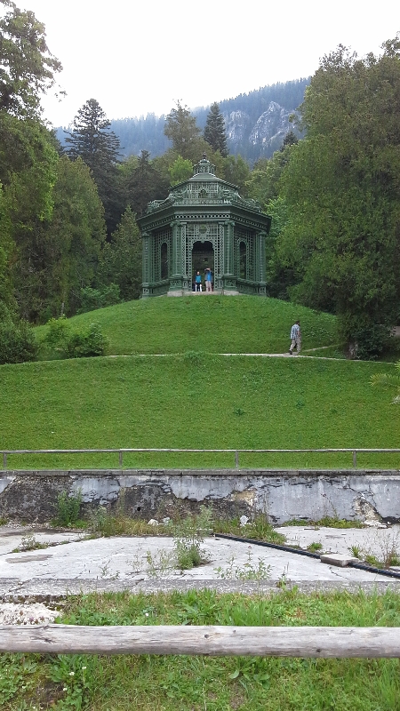 Мы туда не попали так как эта искусственно созданная сталактитовая пещера в скале входит в платное посещение самого дворца, этого грота и Мавританского киоска. Подводное освещение, искусственно создаваемые волны, смена световых эффектов с помощью вращающихся стеклянных Пластинок, приводимыми в действие первыми динамо-машинами: самая современнейшая техника того времени стояла за чудесами воплощенного мира королевских грез.У самого верха паркового ансамбля находится храм Венеры в виде ротонды, отсюда вода стекает вниз каскадами, по тридцати мраморным ступеням
