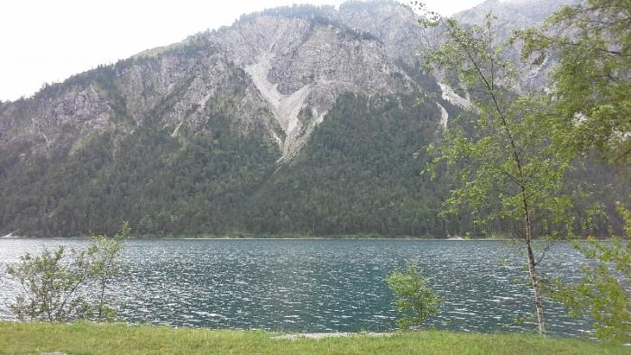 Не удержался и я попробовать за 3.5 евро нюрнбергские колбаски с горчицей.Вкусно!!! Дальнейший наш путь лежал к баварским замкам в местечке Шпангау на берегу озера Альпзее. Дорога пролегала по горной местности, проехали кусочек Австрии и снова вернулись в Германию.По пути на австрийской территории встретилось вот такое симпатичное горное озеро Планзее