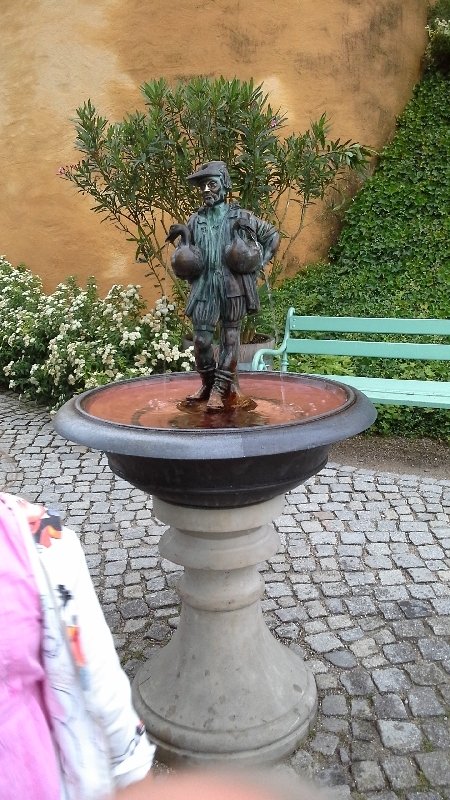 В заключении нашего посещения дворцового ансамбля нам, как я уже говорил удалось заснять 30 метровую струю фонтана. Зрелище восхитительное. Ну и у выхода расположены различные кафешки с несомненным атрибутом баварской местности пивом и колбасками.