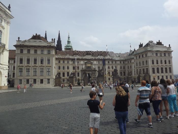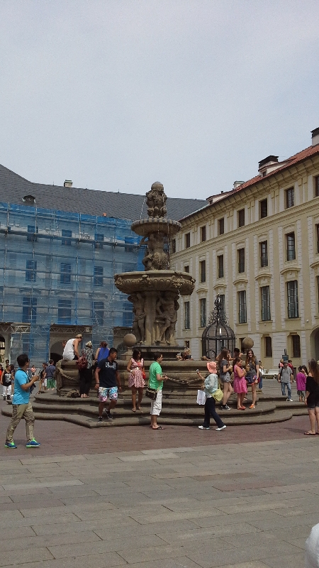 Подъезжаем к знаменитому Пражскому Граду.Дают нам на осмотр полчаса. мало конечно, но для того, чтобы осмотреть сам Град и его окрестности надо приезжать сюда конечно не в составе экскурсионной группы Сити-тура. Градчанская площадь перед президентским дворцом 2-й двор Пражского Града и Леопольдов фонтан