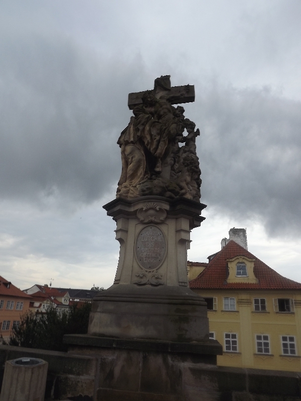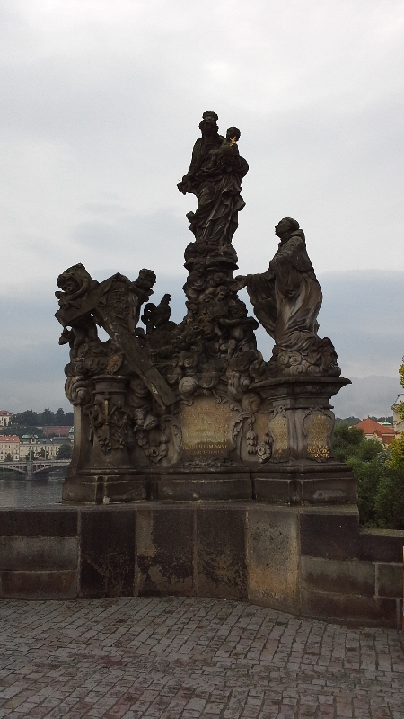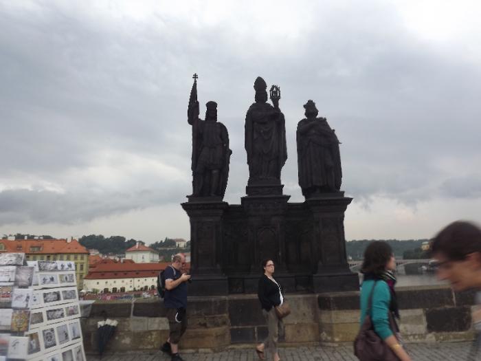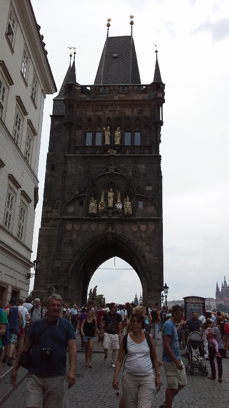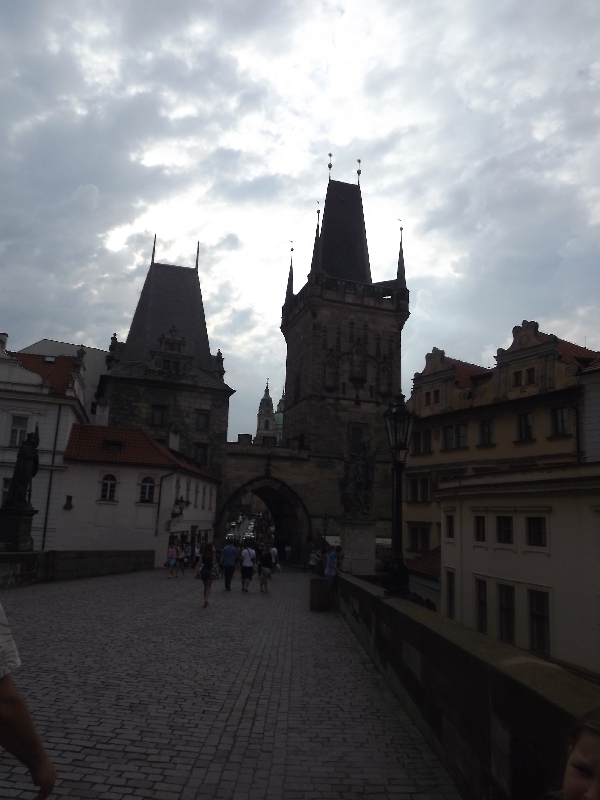 По сути Чертовка – не речка, а рукотворный канал. Его специально выкопали в XII веке для работы водяных мельниц. Старинные дома у самого канала пострадали от наводнений, но сейчас они отреставрированы и во многих из них открыты мини-отели с видом на живописный канал, по которому, словно в настоящей Венеции, передвигаются как «исторические» гондолы, так и современные катера. .Это я уже снял с моста. Все бы ничего но во время поездки на кораблике пошел сильный дождь.Экскурсия оказалась частично смазанной. После ее окончания ныряем в первый попавшийся ресторанчик, чтобы пообедать. За обед с традиционным вепревом коленом, пивом и супом для Кати заплатили 660 крон. Вышли из ресторанчика, дождь перестал. Наконец пошли по Карлову мосту.Карлов Мост один из самых известных мостов в мире и одна из главных достопримечательностей Праги. Мост, которому почти 700 лет, величествен и прекрасен. Здесь царство художников, мелких ремесленников, предлагающим свою продукцию, музыкантов