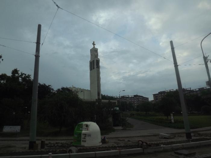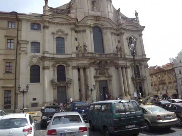 Покидаем Карлов мост и выходим в район Малая Страна.Время уже близится к вечеру и мы решаем съездить на окраину, воспользовавшись трамваем и посетить какой либо супермаркет.Так мы оказываемся в районе Вршовице и в универмаге Теско. Там прикупили для Кати школьно-письменные принадлежности, ведь она у нас в школу идет в сентябре в первый класс.Недалеко видели фабрику Кохинор, где делают знаменитые карандаши. По дороге видели вот такой современный собор. Костел св. Вацлава. Чехово наместье.