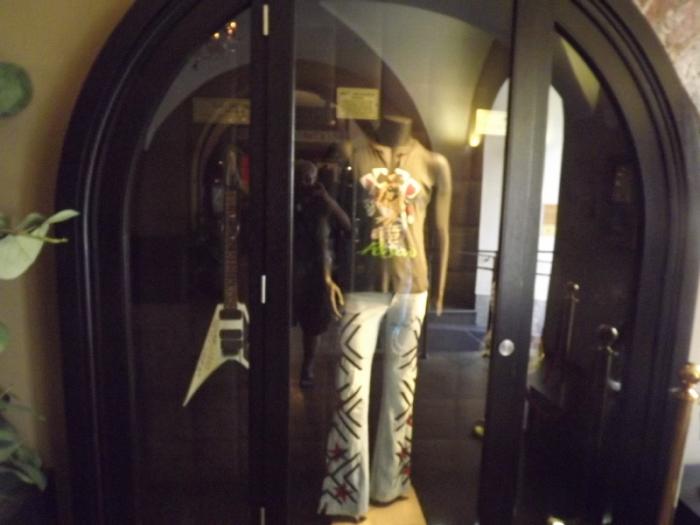 Захожу, полумрак, фотографировать сложно. Знаменитый Харлей солиста Аэросмита Стивена Тайлера «Фендер»<Боба Дилана