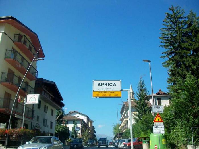 Первый перевал, который мы преодолели, назывался Passo Aprica. Высота перевала 1200м. Это место считается горнолыжным курортом. С её шикарными отелями, ажурными балконами, украшенными цветами, на фоне синего неба Aprica смотрелась великолепно.