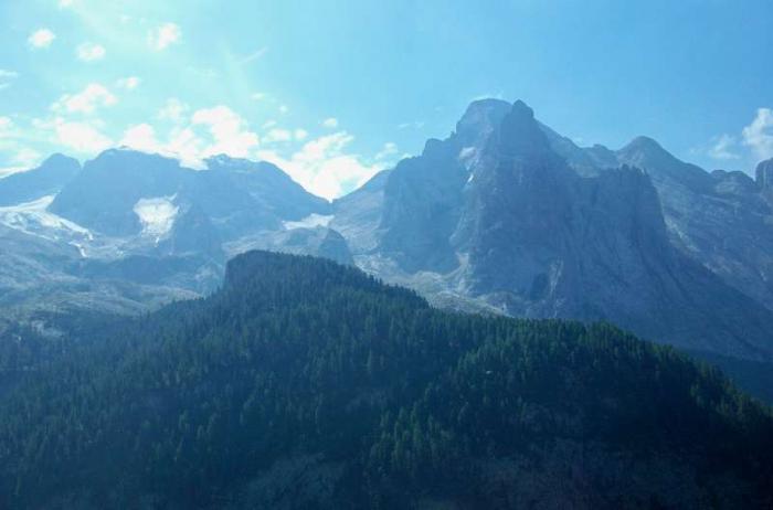 Название породы «доломиты» обязано своим происхождением фамилии Деода де Доломьё – французского геолога 18 в., первого систематического исследователя этих гор. В список наследия ЮНЕСКО живописные горы попали как объект, «представляющий собой природный феномен или пространство исключительной природной красоты и эстетической важности». Доломитовые Альпы привлекательны своей суровой красотой. Вдоль дороги бегут склоны, покрытые тёмно-зелёными елями, а над ними возвышаются горные исполины, слоистые, изрезанные каменными морщинами. Их величественные силуэты закрывают собой полнеба. В синее небо они вписываются очень гармонично. Если выстроить гамму цветов по порядку, то сначала будет ярко-зелёный (цвет альпийских лугов), затем – тёмно-зелёный, потом серебристо-серый, и, наконец, синий.