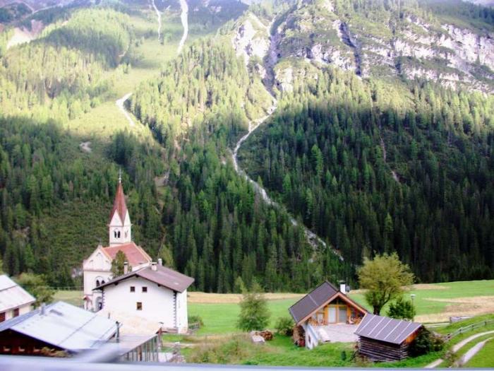 Австрийская архитектура отличается от итальянской: строже, проще, линии прямые и никаких излишеств. Правда, встречались изредка жилые дома, похожие на дома Северной Италии – деревянный второй этаж, с резными балконами, украшенными цветами. Лужайки возле домов были светло-зелёные, яркие, солнечные.